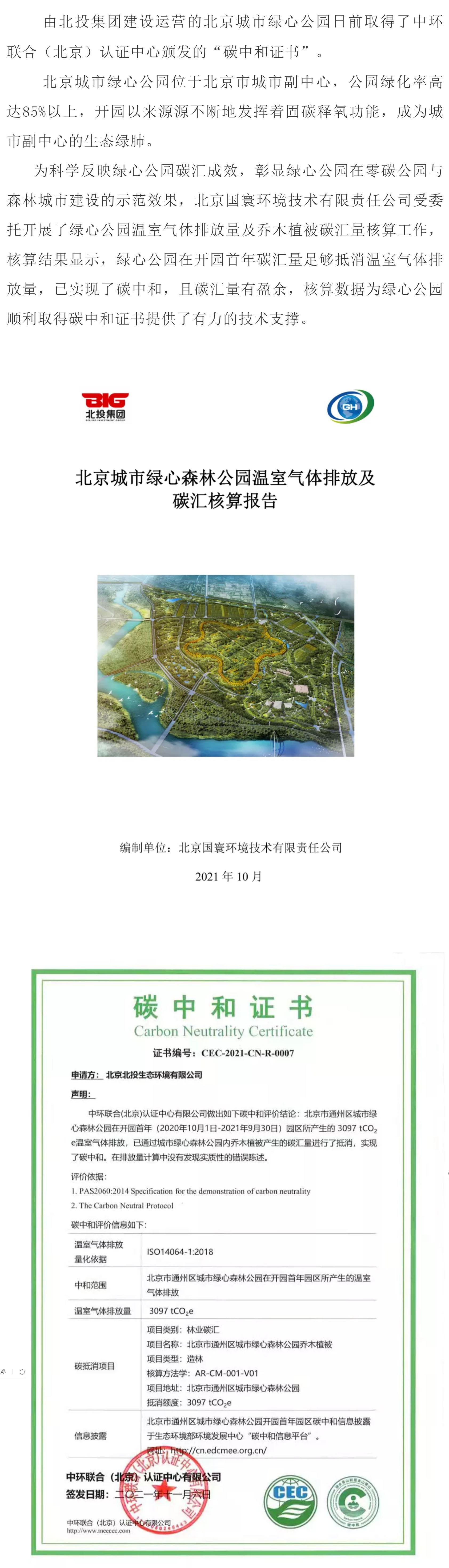 專業服務助力北京城市綠心森林公園取得碳中和證書